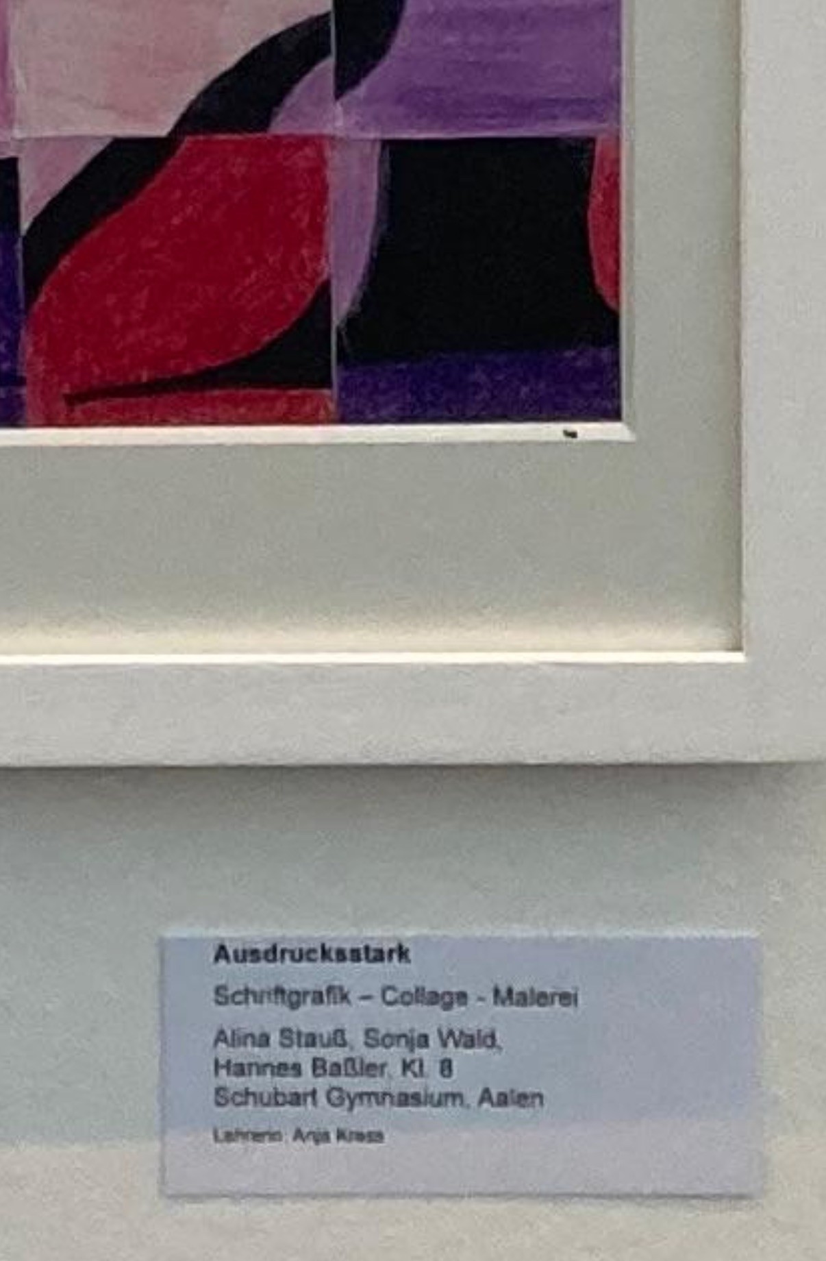 Drei Schüler:innen des Schubart-Gymnasiums sind in der Landesausstellung SCHULKUNST in Stuttgart vertreten.