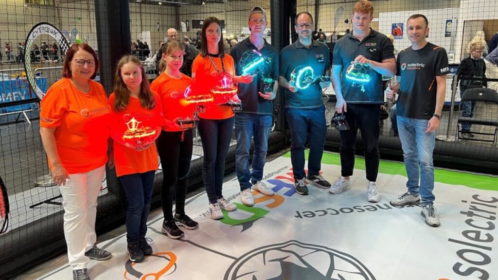 Die WM-Teilnehmerinnen Jasmin, Nathalie und Annika zusammen mit Frau Möbius und den Herren der unterlegenen Mannschaft