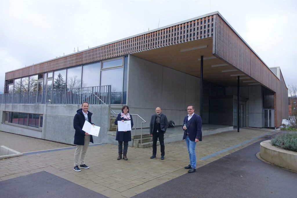 16.12.2021: OB Brütting, Frau Dittmann, Herr Liebel und Herr Steidle halten die Auszeichnung stolz in den Händen