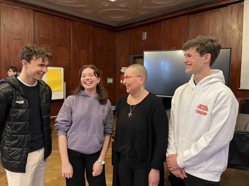 Coach Tosca Zastrow-Schönburg im Gespräch mit Schüler:innen der SMV, die den Vortrag „Mit Prüfungsangst umgehen“ organisierten