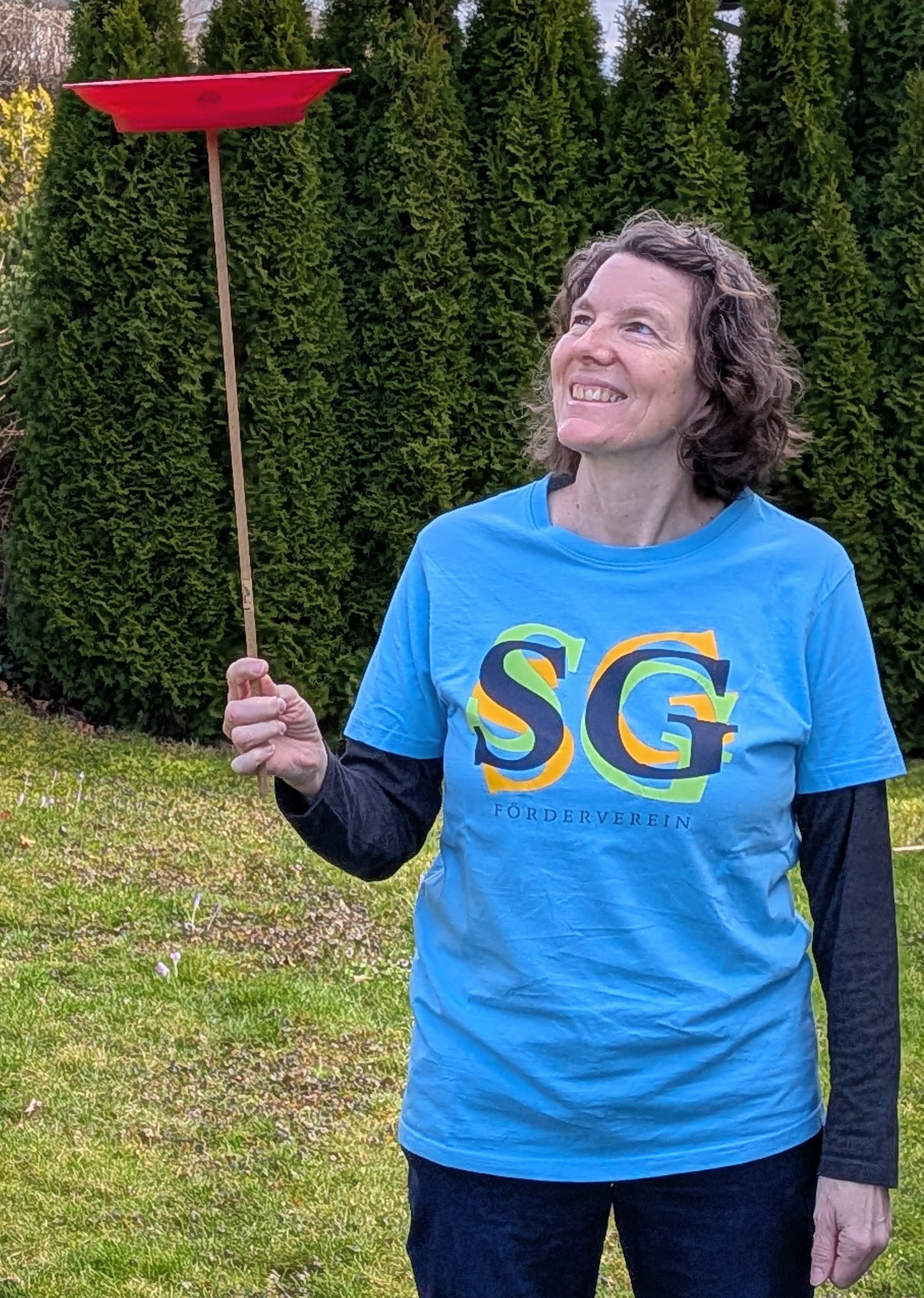 Als Mitglied im Vorstand des SG-Fördervereins statte ich zu Beginn jedes Schuljahrs die Spielekisten für die Unterstufe u.a. mit Fußbällen, Tischtennisschlägern und Frisbeescheiben aus. Da eines meiner Hobbys das Jonglieren ist, habe ich vor ein paar Jahren für die 5. Klassen zusätzliche Jonglierteller zu den vorhandenen gespendet, damit mehr Schülerinnen und Schüler sie nutzen können. Das Tellerdrehen fördert die Koordination, macht Spaß und ist eine kreative Beschäftigung in der Pause. Man hört und liest immer wieder, dass sich Kinder und Jugendliche zu wenig bewegen, deshalb liegt es uns als Förderverein am Herzen und auch mir persönlich ist es aus meiner beruflichen Erfahrung wichtig, hier einen Beitrag zu leisten.