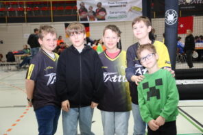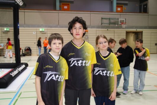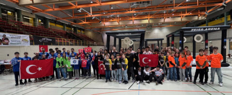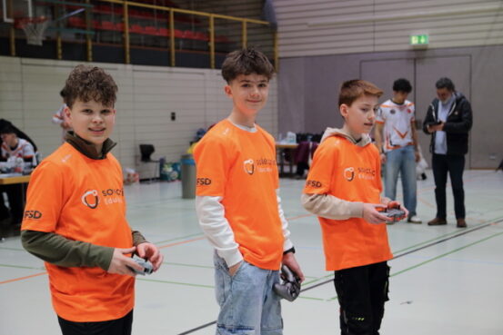 Am Wochenende war es soweit, der dritte international ausgeschriebene Drone Soccer Cup fand in der Pfeifle Halle in Aalen statt.  Dieser Wettbewerb war gleichzeitig das Startsignal für eine internationale Serie der FAI – analog der Champions League im Fußball. Dazu waren sechs Teams aus der Türkei und ein Team aus Bulgarien angereist. Parallel zu dem internationalen Wettbewerb fanden die Deutsche Jugendmeisterschaft und ein offener Schul-Cup statt, an dem sich alle Schülergruppen des Landkreises beteiligen konnte. Gespielt wurde diesmal am Samstag in drei Arenen, sodass sich den Zuschauern ein tolles Bild bot.  Pünktlich um 9.00 Uhr eröffnete OB Frederick Brütting den Wettbewerb auf deutsch und auf türkisch, eine tolle Geste für die Gäste. Den offenen Schul-Cup gewann das Team des Kopernikus-Gymnasiums. In der Deutschen Junioren-Meisterschaft 2026 belegten erwartungsgemäß unsere beiden international erfahrenen Jugendteams die ersten beiden Plätze. Toll ist der dritte Platz einer ganz neu zusammengestellten Mannschaft. Mit Josefine, Yara, Charlotte und Helen traten drei junge Mädchen der Klassenstufe 5 an und zeigten attraktiven Drone-Soccer. Mit Sicherheit werden die vier in kurzer Zeit auf dem internationalen Parkett zu sehen sein. In der Internationalen Wertung belegte unser Spitzenteam Platz 2 hinter der ersten Mannschaft der Türkei. Da gab es auch ein paar Tränchen, denn Deutschland lag in Führung, als die Technik auf einem Ball versagte. Ein solcher Wettbewerb ist natürlich nicht ohne Helfer möglich. Die zeitige Einbeziehung der Eltern in dieses Projekt ist der Schlüssel zum Erfolg. Kuchen im Überfluss, Popcorn, Getränke aller Art, Hilfe bei Auf- und Abbau, Schiedsrichter – bei diesem Wettbewerb lief alles wie von Geisterhand gesteuert. Und natürlich ein ganz toller Dank an Thomas, den Hausmeister, der uns seit Jahren verbunden ist, dem unsere Art der Jugendarbeit gefällt und der uns in jeder Beziehung unterstützt hat.