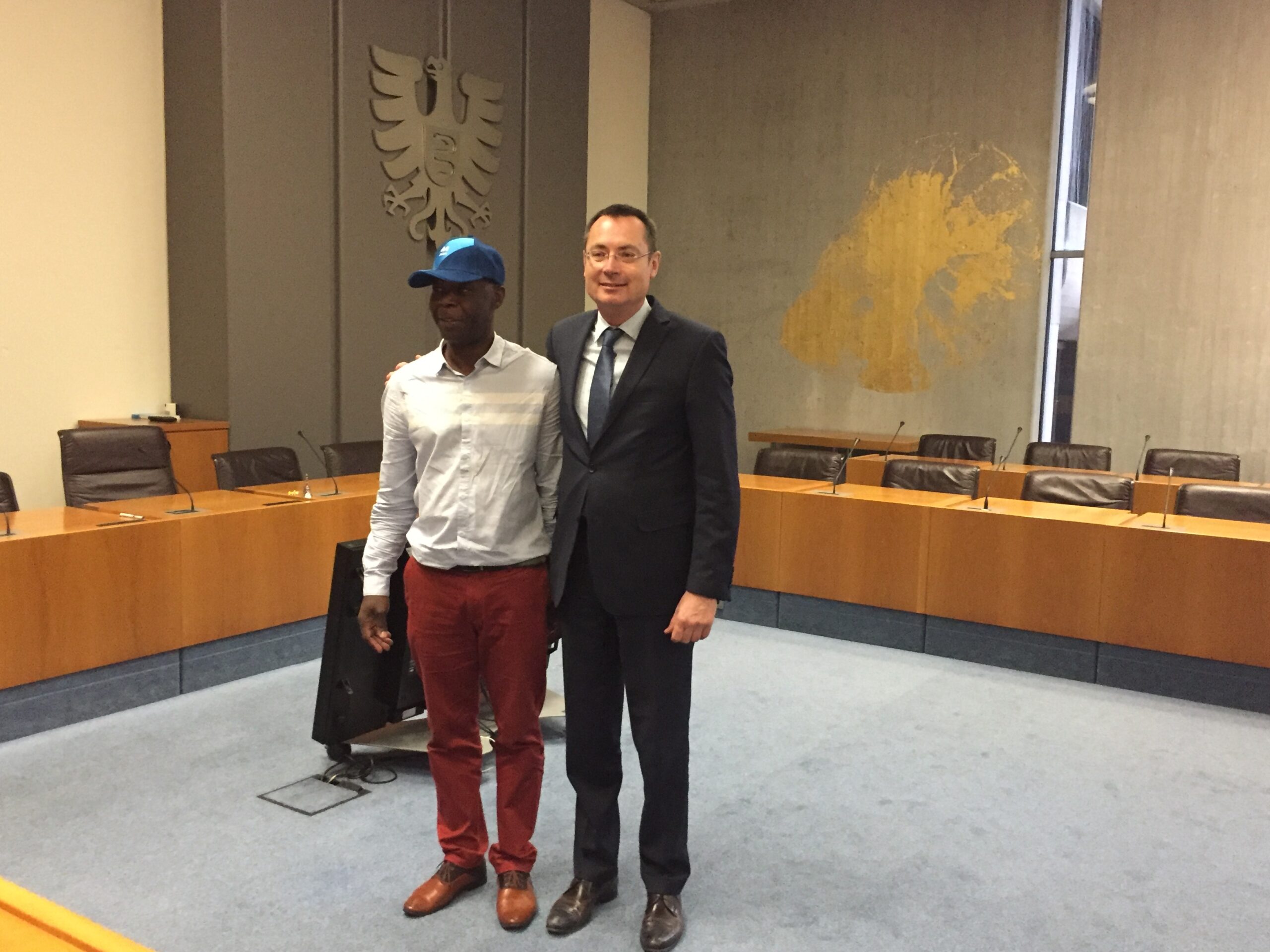 09.-17.12.2018: Bürgermeister Thilo Rentschler begrüßt Monsieur Desire Tapsoba mit den Schülerinnen und Schülern aus Saint-Lô