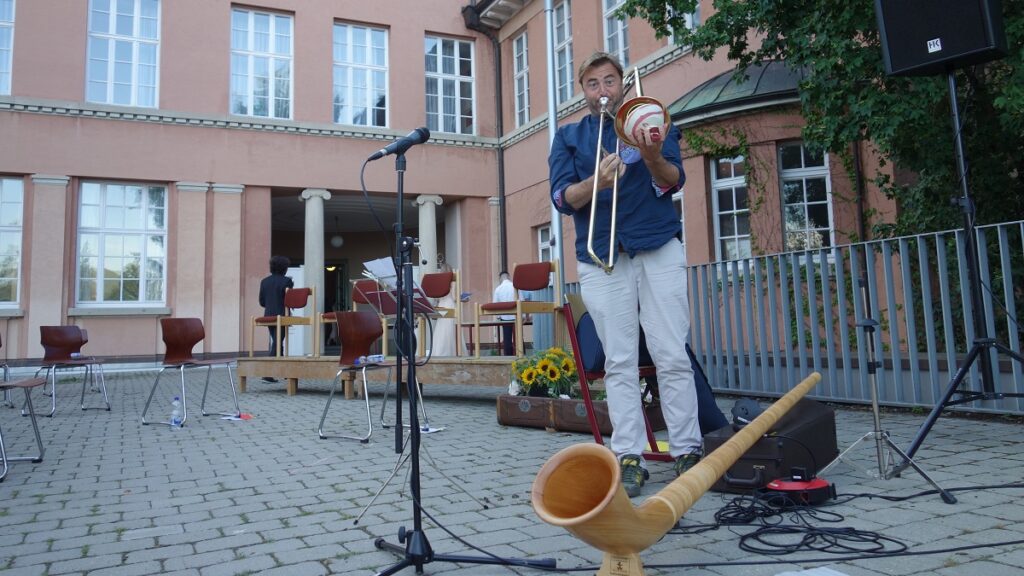 28.07.2020: Eine Posaune, ein Alphorn und viele Stimmen: Magnus Barthle kann mehrstimmig mit und ohne Loop!
