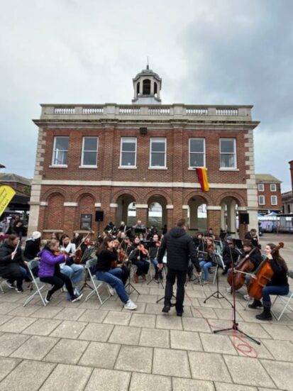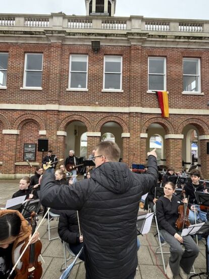 Beide Konzerte von Orchester und Faltenrock konnten in Christchurch stattfinden: Für das Open-Air-Konzert meinte es Petrus gut: Das Wetter hielt und unsere Musiker wurden in England kräftig gefeiert. Mehr dazu, sobald die Musiker wieder zu Hause sind …