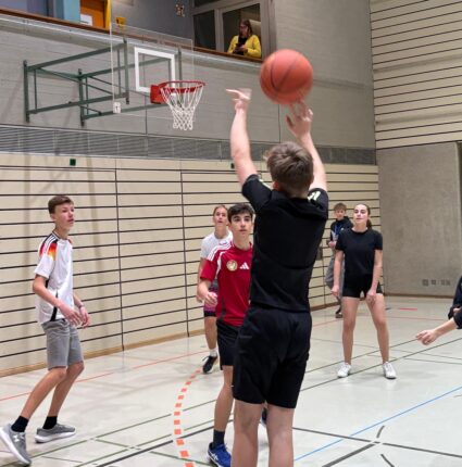 Am 23. Januar 2025 fand das beliebte Basketballturnier der SMV statt. Die Klassen der Stufen 7 bis K2 standen sich in spannenden Duellen gegenüber. Gespielt wurden jeweils 8 Minuten auf 2 Spielfeldern. In der Halle herrschte gute Stimmung und die Teams wurden von ihren Klassenkamerad:innen kräftig angefeuert und unterstützt. Nach den Vorrunden qualifizierten sich die Klassen 9b, 9c, K1 (1) und K2 für das Halbfinale. In den spannenden Halbfinalspielen sicherten sich schließlich die 9c und die K2 den Einzug ins Finale. Dort setzten sich die diesjährigen Abiturienten durch und siegten gegen die erfreulich starken 9er. Unser Dank geht an die SMV, den SSD, die Verbindungslehrer, die Schiedsrichter und natürlich an die Schulleitung sowie an alle Teilnehmer, die diese gelungene Veranstaltung überhaupt erst möglich gemacht haben. (Lennart Hartjes)