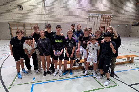 Das jährliche SG-Fußballturnier des Schubart-Gymnasiums, welches die letzten Jahre coronabedingt leider ausgefallen war, konnte dieses Jahr endlich wieder stattfinden. Am Freitagnachmittag, 20.05.2022, trafen sich viele fußballbegeisterte Schülerinnen und Schüler des SG, um auf dem VFR-Kunstrasen in einem packenden Turnier den Sieger unter sich auszumachen. Bei sonnigem Wetter und heißen Temperaturen wurden spannende Spiele zwischen den Klassen mit viel Spaß und Freude ausgetragen. Aufgeteilt in drei Gruppen spielten die Klassen vor den Augen zahlreicher Zuschauer um den Einzug ins Viertelfinale. Durch die große Anstrengung und die heißen Temperaturen durfte natürlich auch der Verpflegungsstand der SMV nicht fehlen. Nach einer spannenden Vorrunde standen die Teams „Treibhause“ (8c) und „FC Lieberampool“ (9b) im Finale. In einem atemberaubenden Finale siegte letztlich „FC Lieberampool“ knapp. Am Ende des Nachmittags fand eine kleine Siegerehrung zur Anerkennung der tollen Leistungen statt.